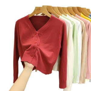 V领短款针织开衫外套女2025秋冬新款黑色外搭毛衣长袖打底衫上衣