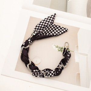 手机挂绳挂手腕高级感短款壳链条手机链女编织丝巾小香风手機掛繩