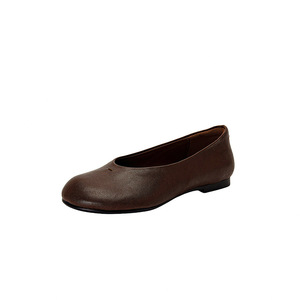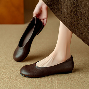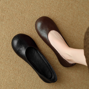 好穿~质感羊皮浅口单鞋女圆头2025春季简约时装鞋套脚方跟低跟鞋