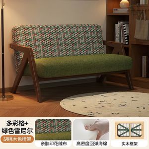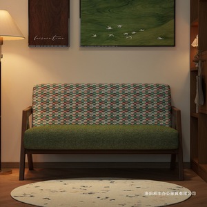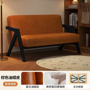 美式复古实木沙发中古风小户型双人客厅公寓酒店民宿布艺小沙发