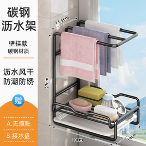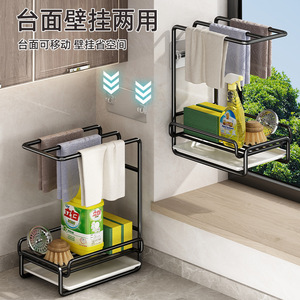 优勤厨房置物架多功能沥水架免打孔台面壁挂毛巾水槽收纳抹布架子