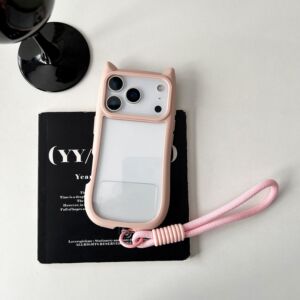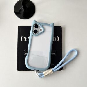 ins风立体卡通猫耳朵适用iPhone17PRO手机壳透明带挂绳苹果16防摔