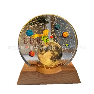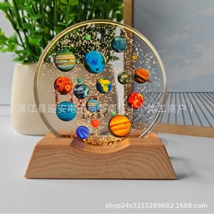 水晶发光小夜灯桌面摆件卧室床头星空银河立体激光彩印生日礼物