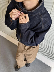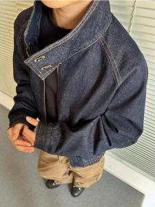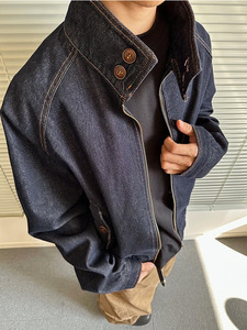 美式简约百搭牛仔外套男cleanfit短款立领无帽夹克秋季休闲上衣潮