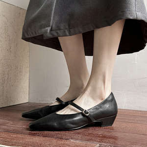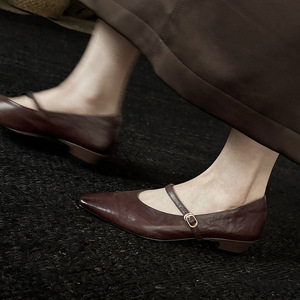 头层牛皮34-40码2025年春秋季方头低跟浅口单鞋复古风玛丽珍鞋