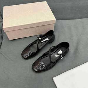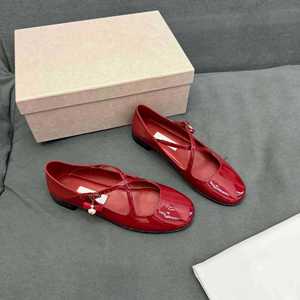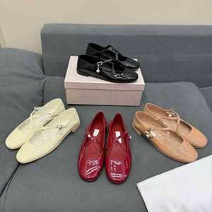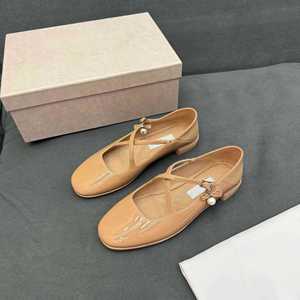 高定新款全真皮交叉带平底玛丽珍鞋圆头浅口单鞋平底珍珠配饰女鞋