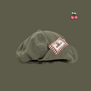 日系复古文艺樱桃贴布贝雷帽子女春夏季新款大头围翻檐云朵画家帽