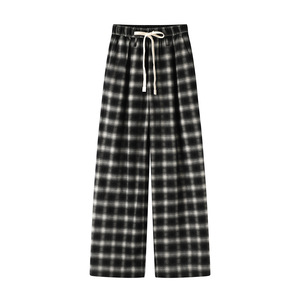 2025秋季新款女装宽松慵懒撞色格子抽绳系带休闲直筒裤子3J3Q412