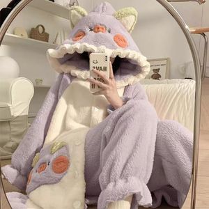 睡衣女秋冬季睡袍加厚保暖可爱珊瑚绒浴袍韩版可外穿中长款家居服