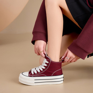 小个子厚底增高百搭休闲高帮帆布鞋女2025秋季新款轻便透气板鞋子