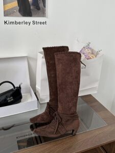 2025欧美风手工扎线方头小猫跟绒面长靴