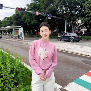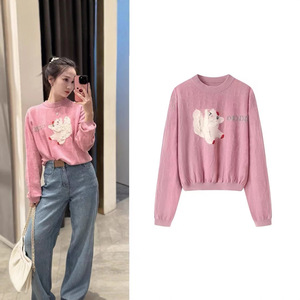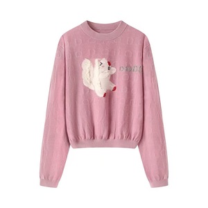 2025年秋季新款休闲百搭圆领卡通刺绣针织衫女2J3E467