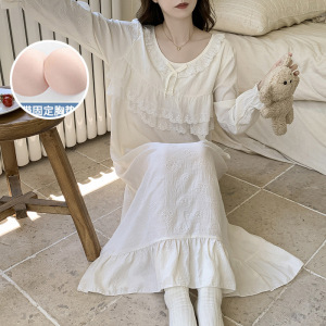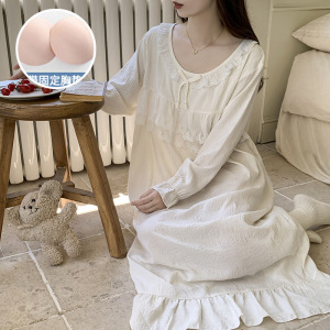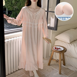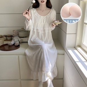 2025新款睡裙女带胸垫春秋季带胸垫长袖薄款睡衣韩版公主风家居服