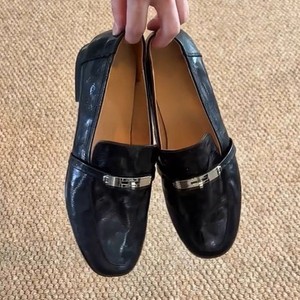 羊皮版~复古黑色英伦金属扣一脚蹬乐福鞋女百搭小皮鞋单鞋