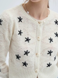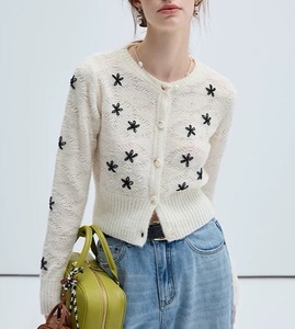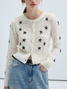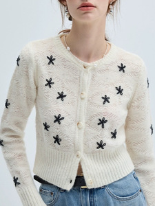 VEGA 毛针织衫女2025年秋季新款慵懒气质小个子刺绣针织开衫