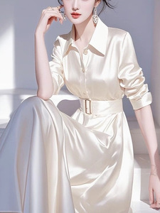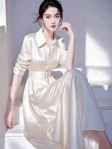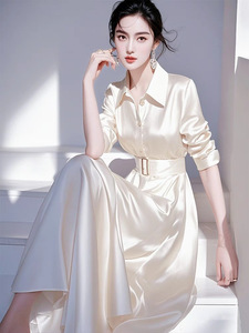 法式精致轻奢高级感正式场合裙子气质收腰小香风纯色衬衫连衣裙秋