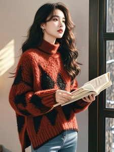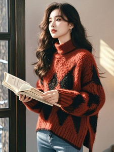 加厚红色毛衣