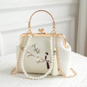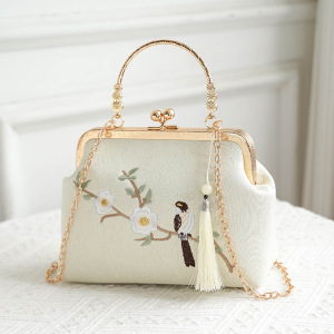 超火小众新中式刺绣包包女2025新款链条斜挎包古风汉服旗袍口金包
