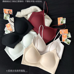 亮闪细肩带反重力舒适无痕内衣女士固定杯薄款小胸聚拢背心式文胸