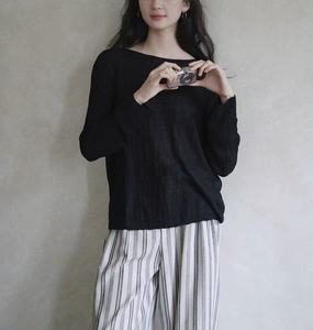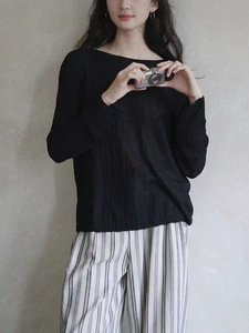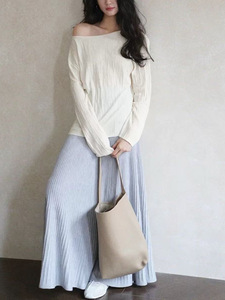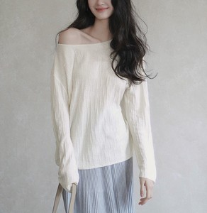 贰羊【亭瞳】新中式纹理白色慵懒松弛感百搭宽松一字肩衣女