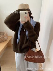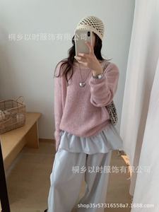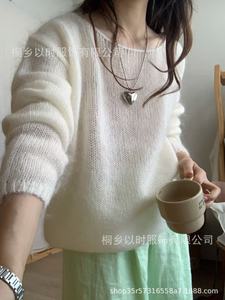 以时 秋冬新品韩系2025高比例马海毛针织女装 一字领毛茸茸毛衣女