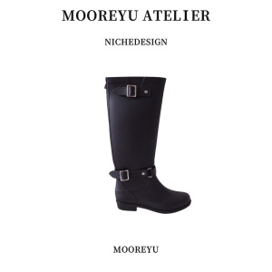 Mooreyu雨靴子女2025年大筒围显瘦高筒靴粗腿圆头不过膝长筒靴女