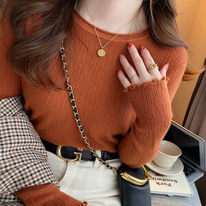 白色针织打底衫女2025秋冬新款内搭修身毛衣设计感木耳边长袖上衣