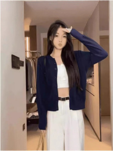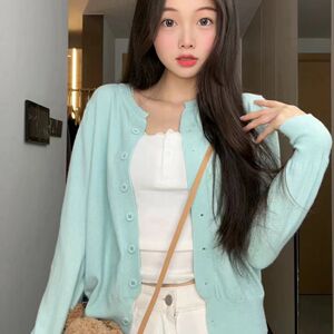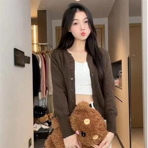 【现货】春秋软糯亲肤韩版宽松慵懒风时髦百搭打底针织开衫上衣