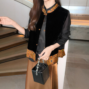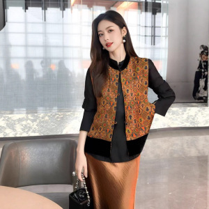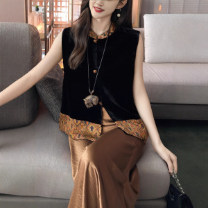 新中式真丝丝绒拼接香云纱两面穿马甲简约百搭时尚叠穿背心不退换