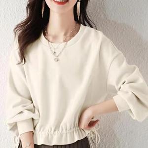 港风ins潮设计感小众短款长袖卫衣女秋冬新款圆领套头学院风上衣