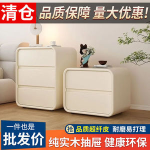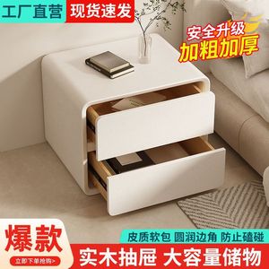 简约现代床头柜奶油风实木收纳超窄新款三层轻奢卧室储物床边家用