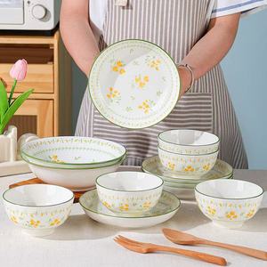 春意田园釉下彩陶瓷碗碟高颜值餐具家用米饭碗汤碗菜盘子水果盘