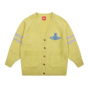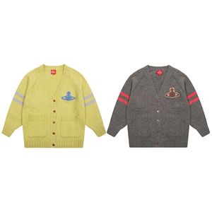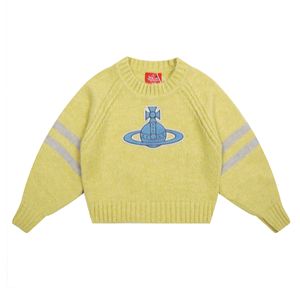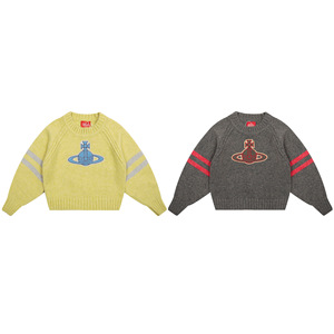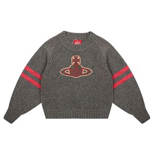 VIVI土星西太后25年春季新款三色纱线羊毛拼接绣花章仔设计款圆领