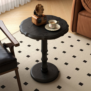 法式中古风实木小茶几客厅沙发边几小户型阳台小圆桌复古角几