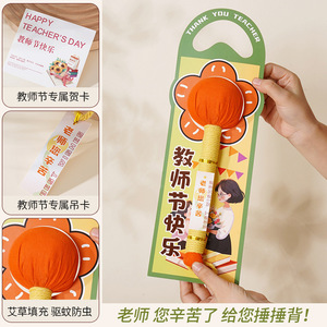【教师节快乐-桔色艾草按摩捶】免费代写贺卡