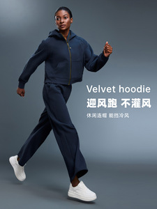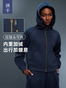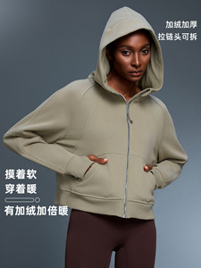 秋冬连帽开衫卫衣女加绒保暖拉链外套减龄宽松休闲运动上衣D25130