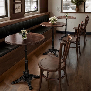 折叠咖啡店桌椅组合美式小圆桌中古风烘焙甜品店餐饮商用可叠加款