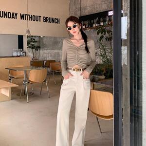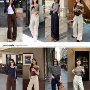 pusumede高腰牛仔裤宽松显瘦百搭直筒休闲裤子女2025新款拖地长裤