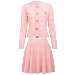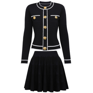 25128现货秋冬新款时尚经典高质量长袖上衣开衫针织衫+半裙套装女