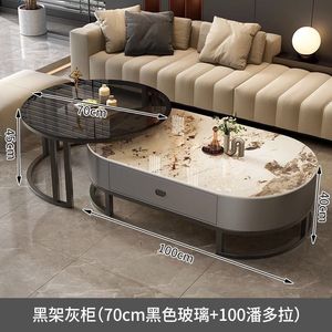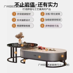 意式轻奢岩板椭圆形客厅茶几家用茶水桌网红高级感大理石茶几组合
