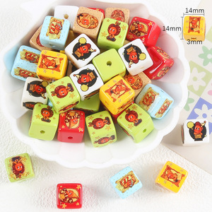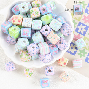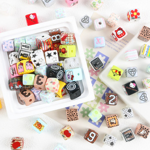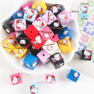 12/14mm亚克力卡通爱心KT猫彩绘方珠diy手机链钥匙扣DIY头绳配件