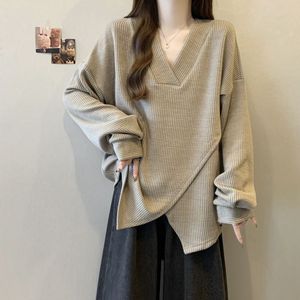 大码纹理感坑条交叉设计感长袖上衣女2025春秋新款宽松显瘦打底衫