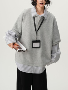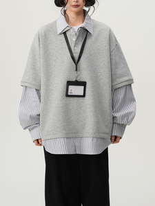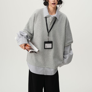 学院风条纹拼接假两件卫衣女男女春季复古小众高级感宽松POLO衫潮