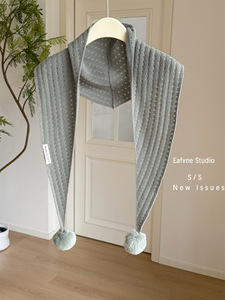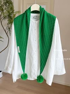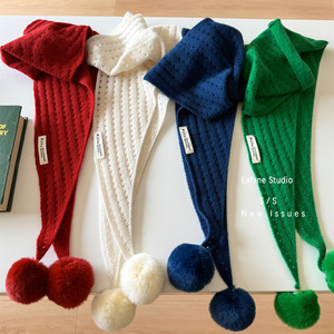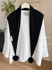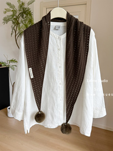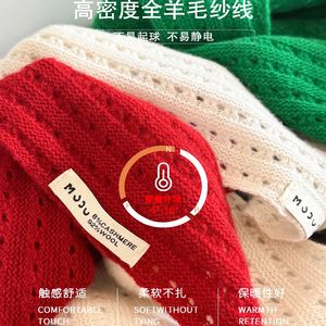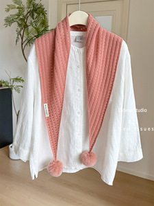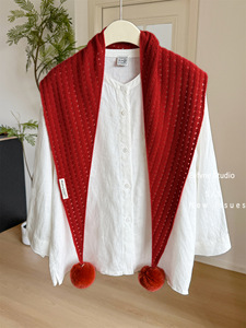 高级感100%羊毛羊绒毛球红色简约三角巾围脖纯色百搭披肩装饰围巾