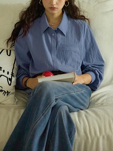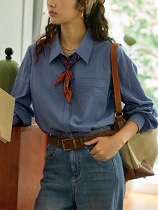 【新品限时9折】solighte法式复古莱赛尔蓝色长袖衬衫女秋季衬衣
