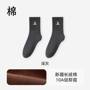 【100%纯棉】可爱小熊袜子女秋冬款防臭抗菌中筒袜卡通刺绣长袜