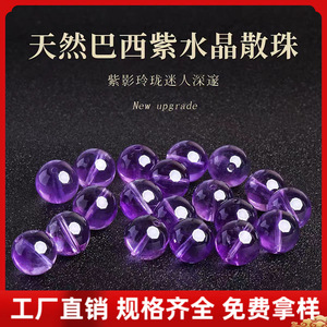 高品质天然紫水晶散珠项链手链圆珠配件混装diy手串配饰工厂批发