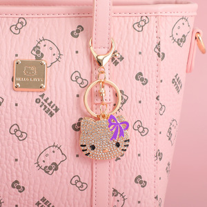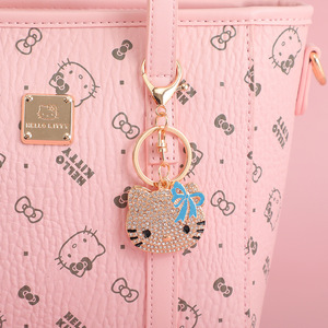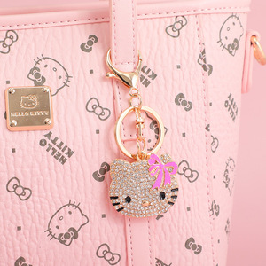 跨境可爱凯蒂猫化妆镜钥匙扣镶钻金属卡通女士包包配饰挂件钥匙链