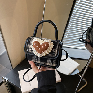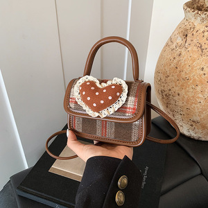 夏天夏季小众迷你斜挎小包包女2025新款爱心格子耳机手提包口红包
