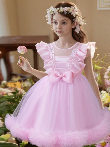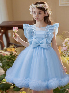 新款儿童网纱礼服蓬蓬公主裙中大童装连衣裙女童周岁服装跨境专供